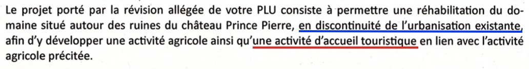 Cet institut ne s’opposera pas au projet de révision allégée du PLU sous “réserves que les constructions directement liées au projet viticole soient regroupées” (moyen anti-mitage).
