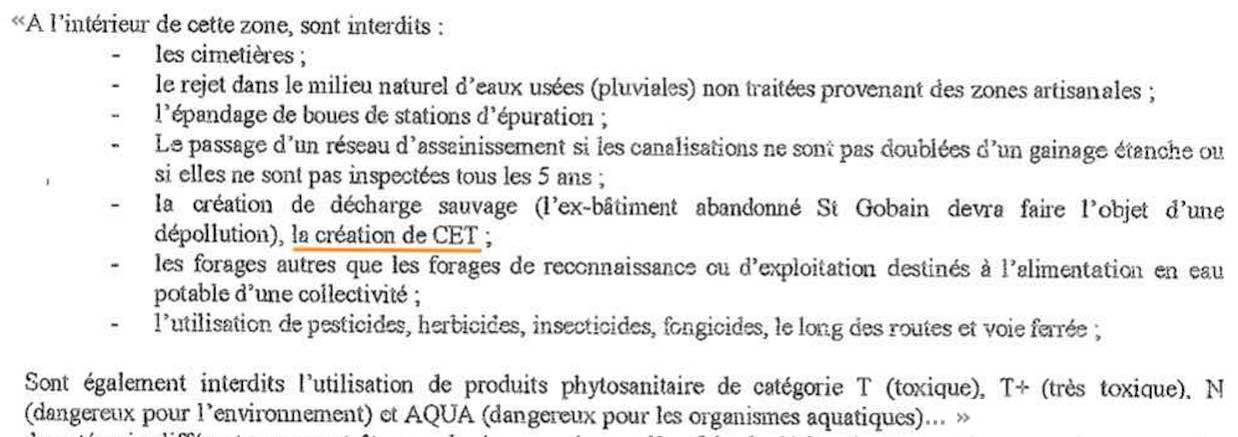Carte extraite de l’arrêté préfectoral de 2010 :