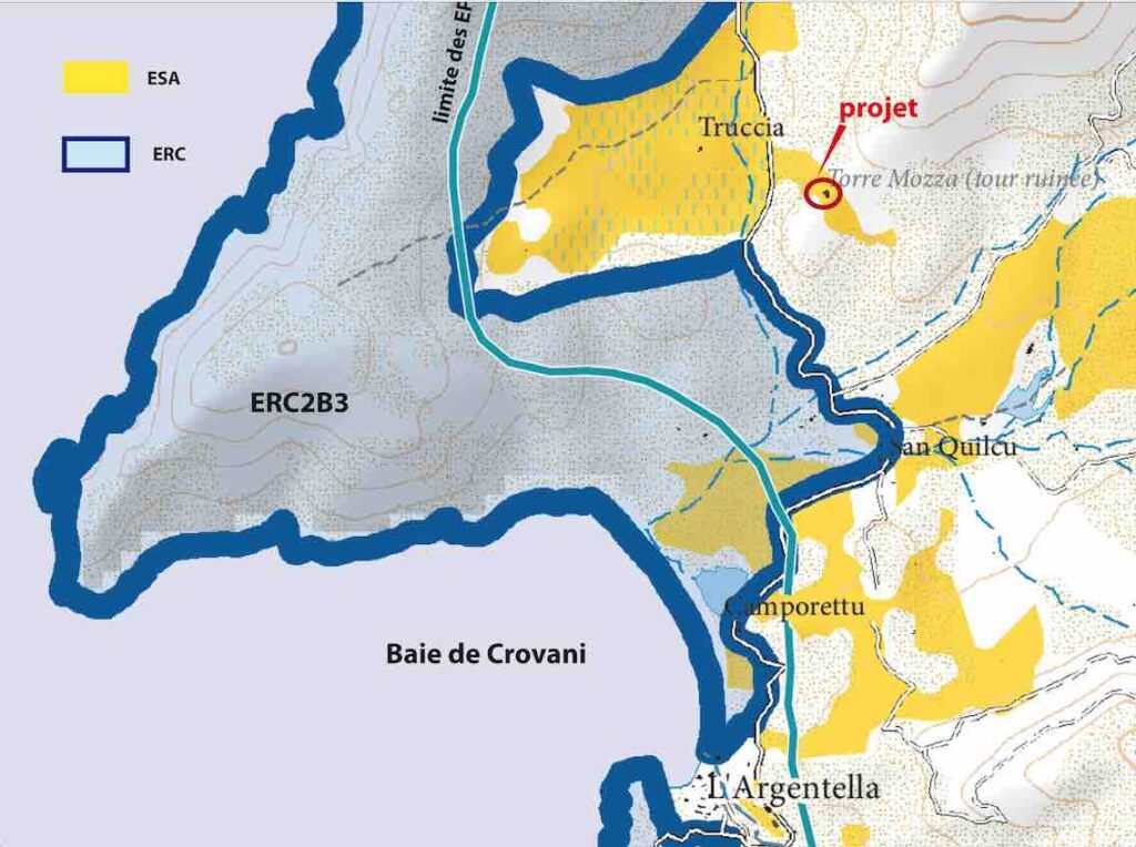 Monsieur le Maire de Calinzana a préparé un dossier spécialement ficelé pour ce projet sous forme d’une révision allégée n°3 du Plan local d’urbanisme (PLU) de la commune. Et hop !, on repousse la limite des EPR (Espaces proches du rivage), et hop !, on rend constructibles les ESA (Espaces stratégiques agricoles) et les ERPAT (Espaces, ressources pour le pastoralisme et l’arboriculture traditionnelle), et hop !, on oublie la loi Littoral et le PADDUC.